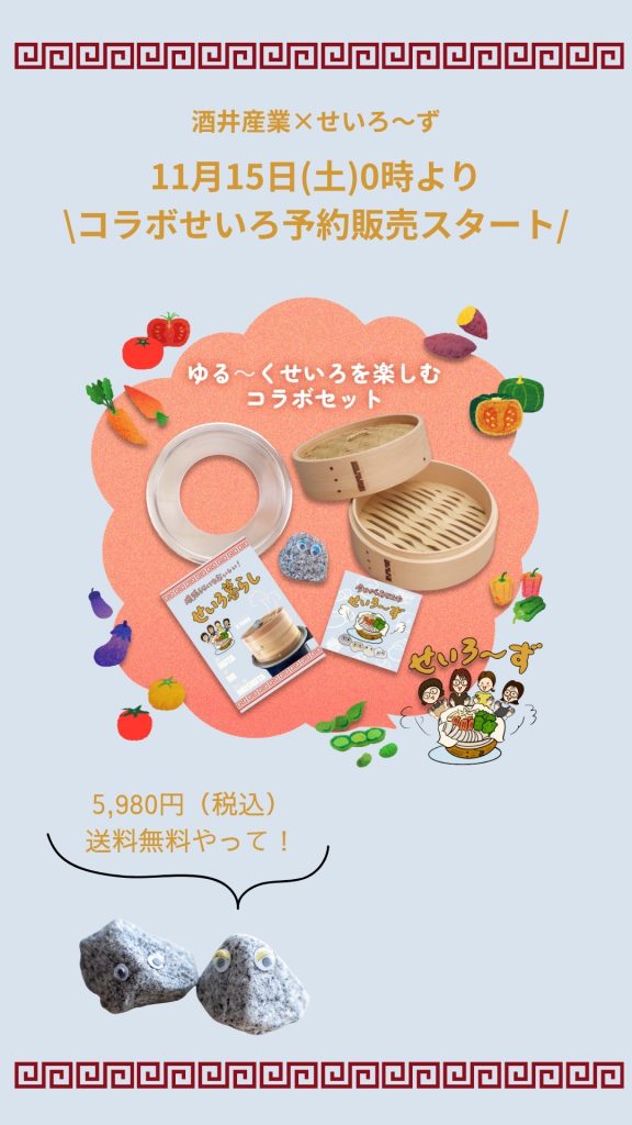 このたびご縁をいただき、せいろ〜ず×酒井産業様とのコラボ企画に参加させていただいております。